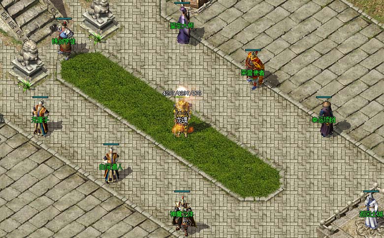 盟重土城,这小地图上的蓝点都代表有功能NPC